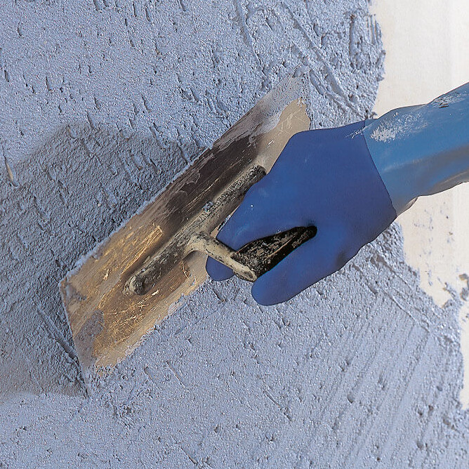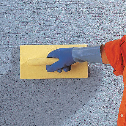 Münchner Rauputz (MRP); in 2 mm-Körnung (Farbe: hellblau) für einen dünnschichtigen Edelputz in typischer Münchner Rauputz-, Wurm- oder Rillenputzstruktur. | Verbrauch: bei 2 mm Auftragsstärke ca. 4,5 kg/m²