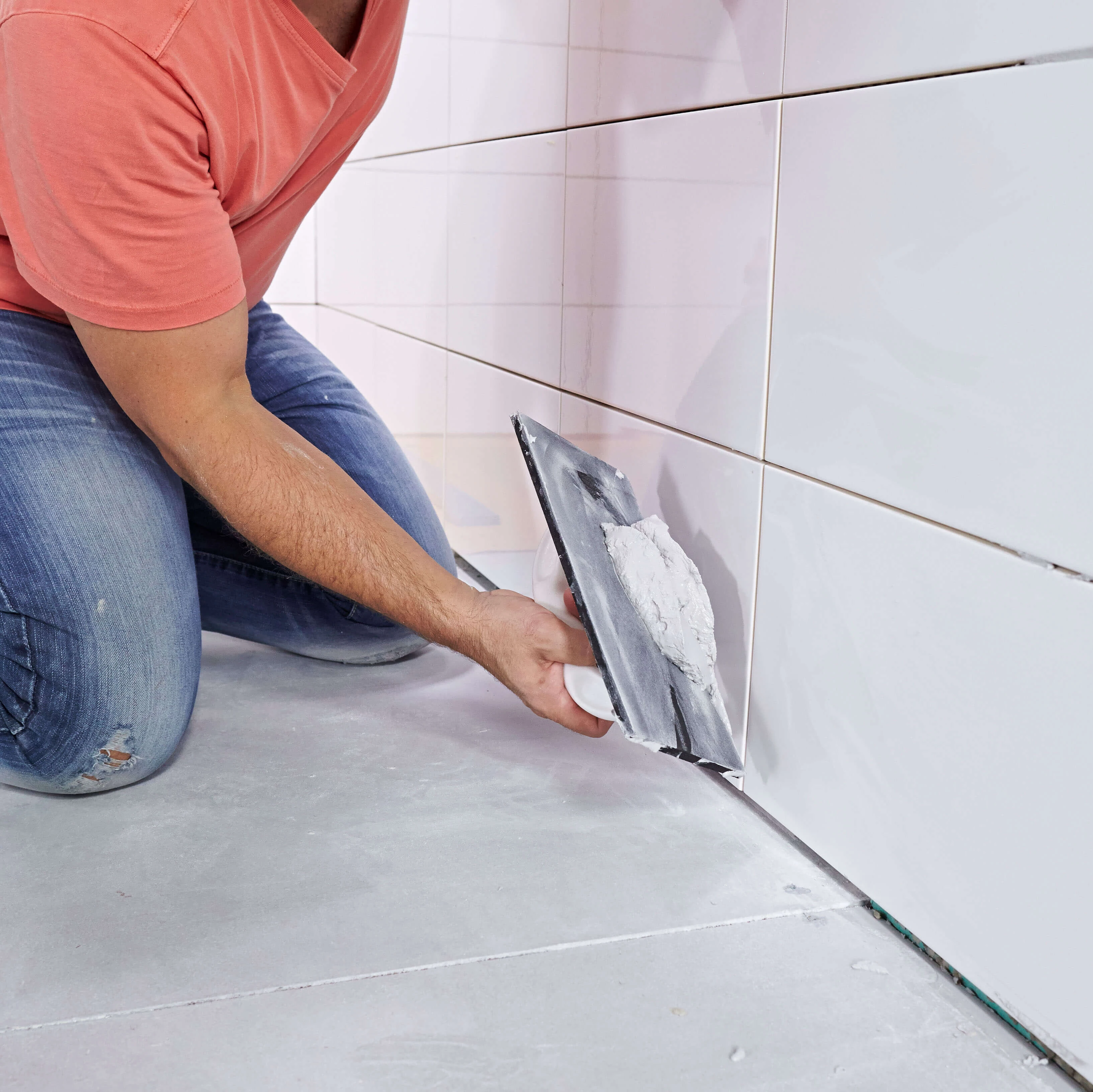 Jetzt fehlen nur noch die Fugen. Wählt zunächst den richtigen Fugenmörtel aus. Im Außenbereich, im Dauernassbereich und auf Fußbodenheizungen braucht ihr einen flexiblen Fugenmörtel. Für alles andere ist normaler Fugenmörtel ausreichend.