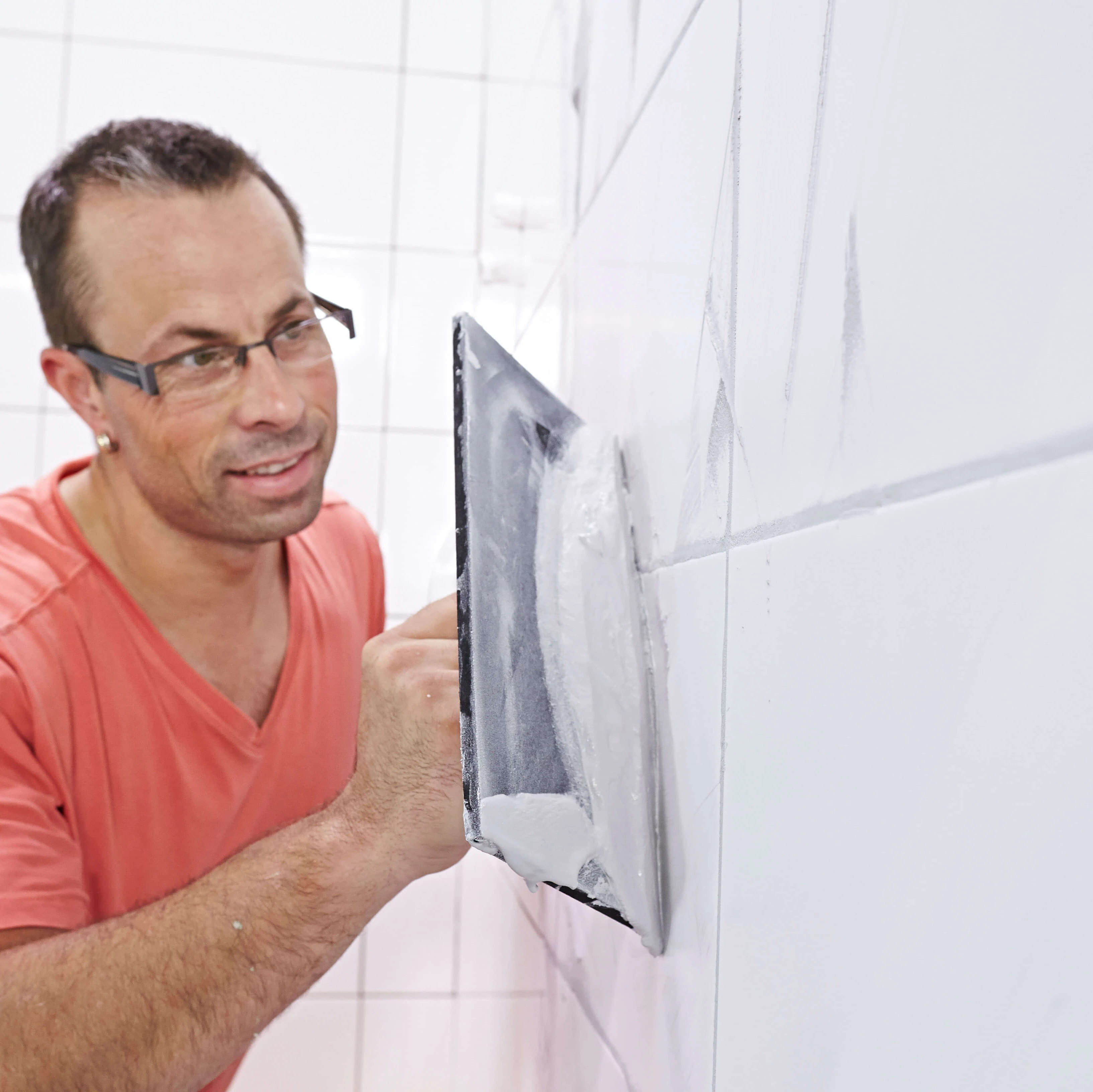- Achtet darauf, dass die Fugen glatt an die Oberkante der Fliesen anschließen – an den Übergängen darf es keine Sprünge geben.
