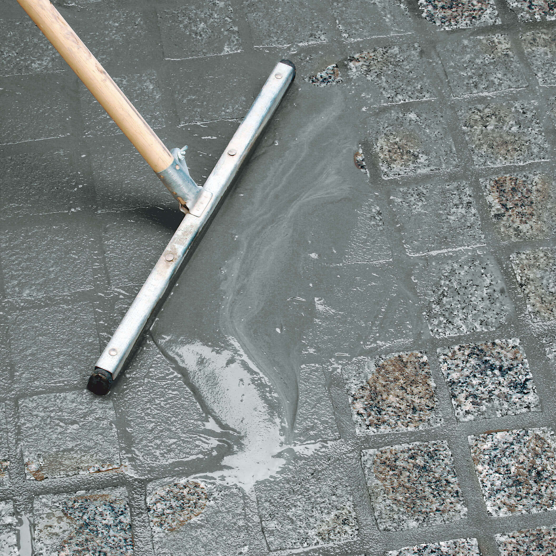 - Wenn ihr Sand oder Mörtel in die Fugen einbringt, solltet ihr den Besen oder den Gummischieber immer diagonal zu den Fugen bewegen, um das Material nicht gleich wieder aus der Fuge herauszubürsten.