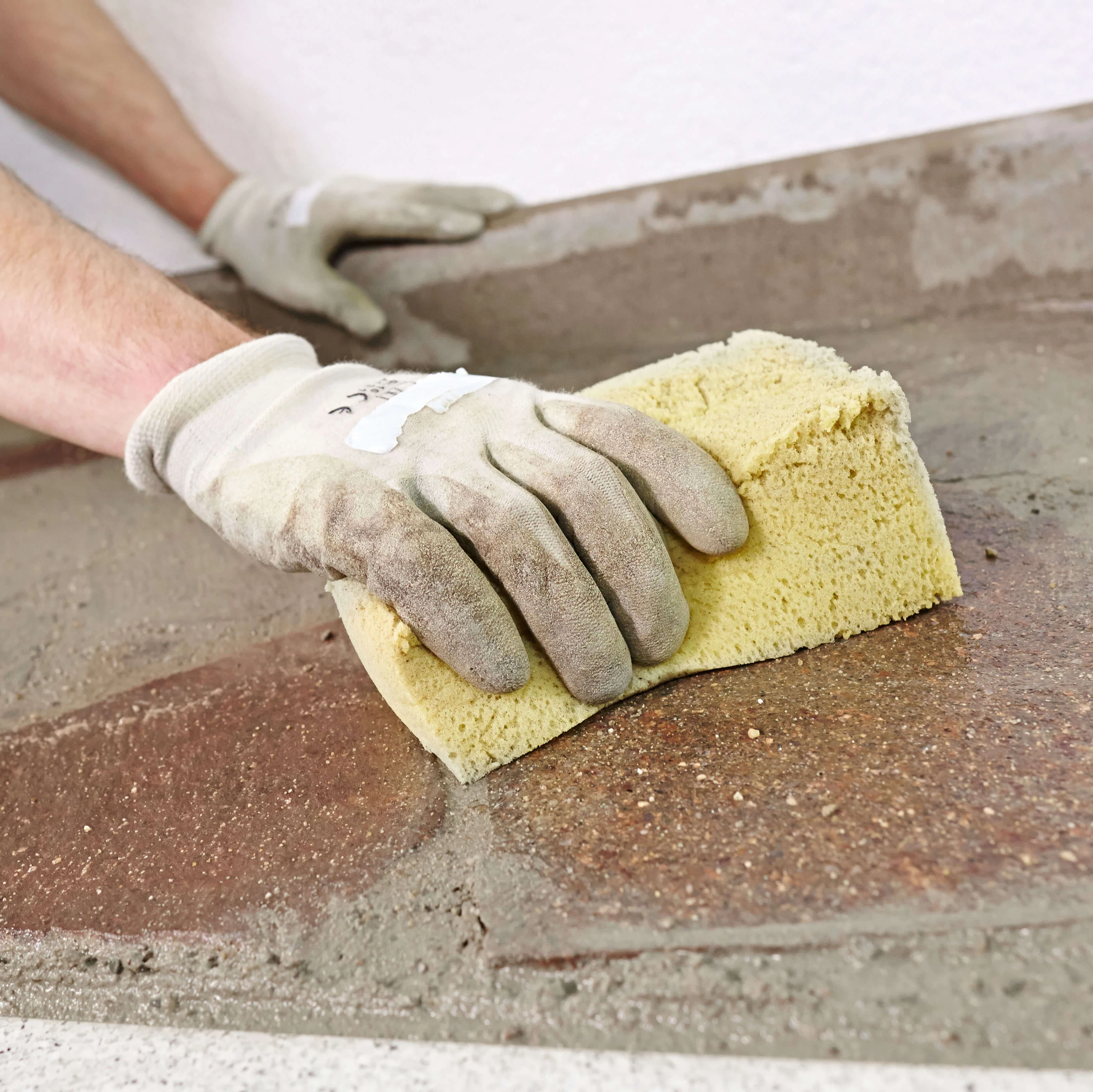 - Wenn ihr Naturstein-Verlegemörtel in die Fugen einbringt, solltet ihr den Besen oder den Gummischieber immer diagonal zu den Fugen bewegen, um das Material nicht gleich wieder aus der Fuge herauszubürsten.