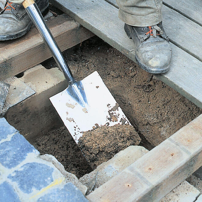 Um ein dauerhaftes und frostsicheres Fundament zu erstellen, müsst ihr dieses in einer Tiefe von mindestens 80 cm in das Erdreich einbinden.