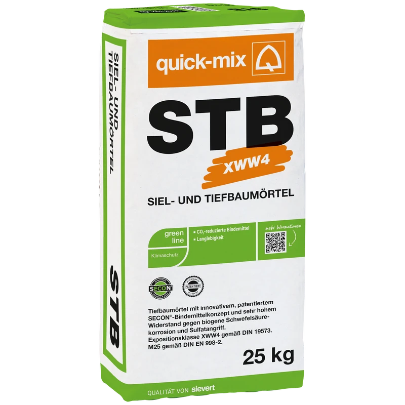 Nicht nur im Hausbaubereich, auch für den Siel- und Tiefbau hat die Sievert-Marke quick-mix ein Produkt im Portfolio, das auf die SECON®-Technologie setzt. Der quick-mix STB Siel- und Tiefbaumörtel XWW4 zeichnet sich durch eine hohe Dichtigkeit aus und hat einen sehr hohen chemischen Widerstand gegen aggressive Abwasser, insbesondere Sulfate. Überzeugen Sie sich selbst.