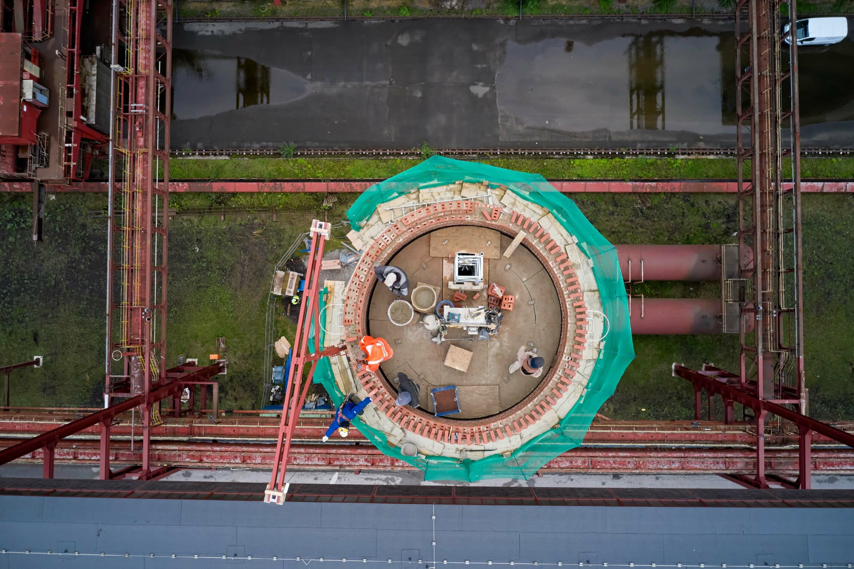 Er kam bereits bei der Sanierung von Schornstein S5 (2018/19) und zuvor auch bei den Sanierungen der Mischanlage für die Schächte I, II, und IIX sowie der Kohlenförderbrücke (beides 2017) zum Einsatz.